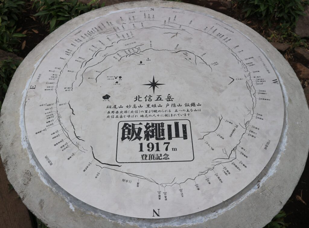 山頂の方位プレートを見ると北信五岳はもとより、北アルプス、南アルプス、富士山が拝めるようです