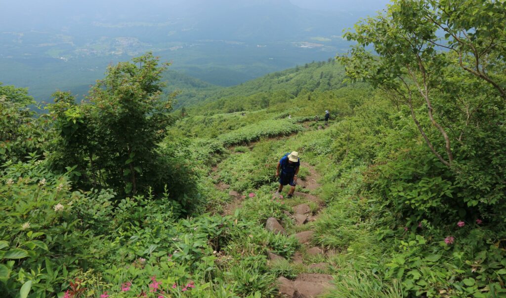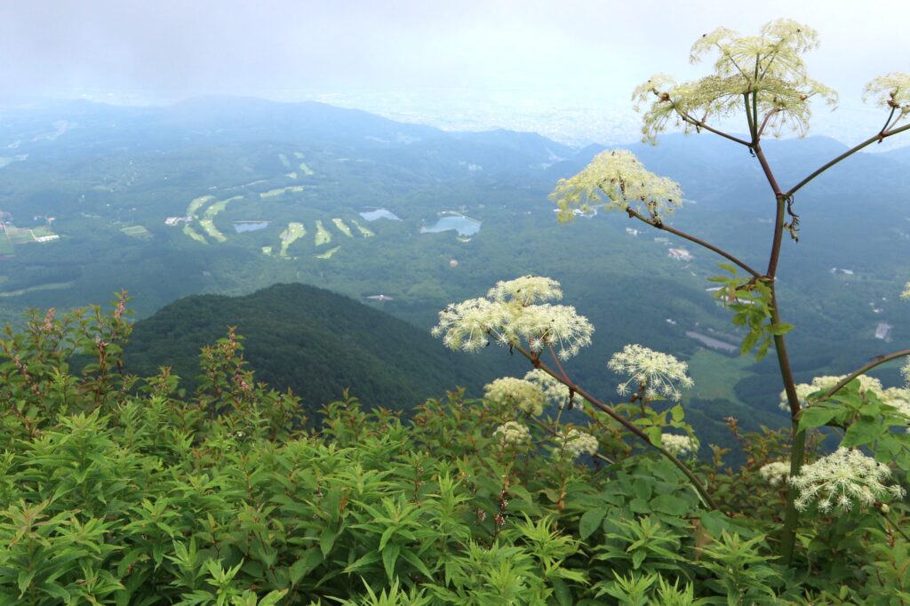 飯縄山は長野県北部にある北信五岳の一つです。また長野市民の憩いの山で、お年寄りから子供まで楽しく登山していました。近くにはスキー場やゴルフ場もあり、隣接する戸隠山と共にリゾート地でもあります(長野市から見ると飯縄山の斜面には飯縄高原スキー場がはっきり見えますが、今は閉鎖されています)。登山道はいくつかありますが、西登山道から登りました。駐車場は既に早朝からいっぱいで、何とか駐車できほっとしました。登り出してから30分ほどすると祠(萱ノ宮)が祀られていましたが、飯綱山は信仰の山でもあり随所に祠がありました。樹林帯を抜けると見晴らしの良い稜線に出ましたが、山頂に着くとガスとなってしまいました。晴れていれば、北アルプスや北信五岳、そして富士山も見られるようです。山頂は広々とし飯縄大明神が祀られていました。